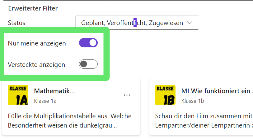 Wie kann ich Aufgaben (Assigments) finden, welche andere Lehrkräfte erstellt haben?